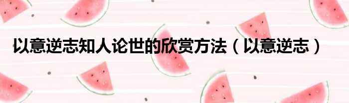 导读 大家好,今天小六子来为大家解答以下的问题,关于以意逆志知人论世的欣赏方法,以意逆志这个很多人还不知道,现在让我们一起来看看吧!1、【