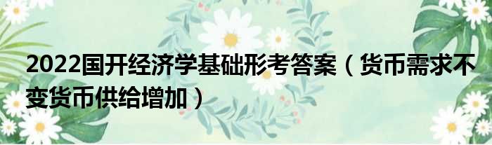 导读 大家好,今天小六子来为大家解答以下的问题,关于2022国开经济学基础形考答案,货币需求不变货币供给增加这个很多人还不知道,现在让我们一