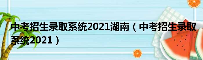 中考招生录取系统2021湖南(中考招生录取系统2021)