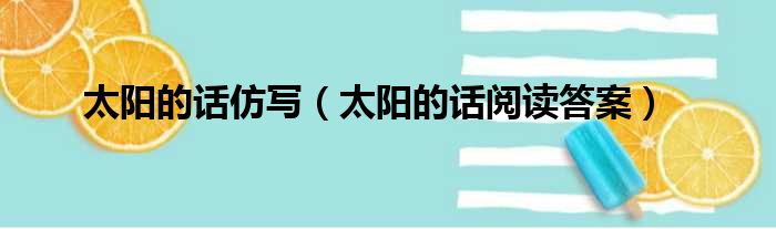 大家好,今天小六子来为大家解答以下的问题,关于太阳的话仿写,太阳的话阅读答案这个很多人还不知道,现在让我们一起来看看吧!
