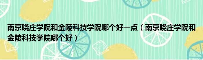 南京晓庄学院和金陵科技学院哪个好一点(南京晓庄学院和金陵科技学院哪个好)
