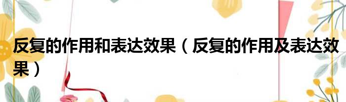 导读 大家好,今天小六子来为大家解答以下的问题,关于反复的作用和表达效果,反复的作用及表达效果这个很多人还不知道,现在让我们一起来看看吧