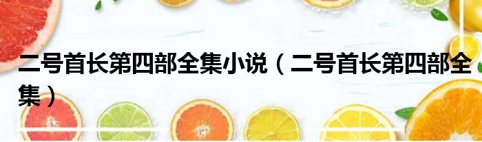 大家好,今天小六子来为大家解答以下的问题,关于二号首长第四部全集小说,二号首长第四部全集这个很多人还不知道,现在让我们一起来看看吧!