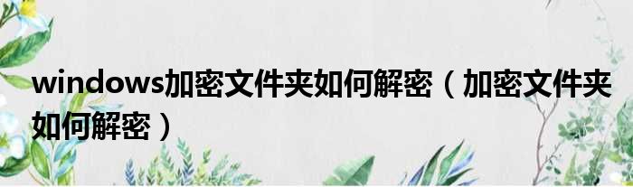 windows加密文件夹如何解密(加密文件夹如何解密)