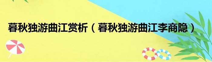 暮秋独游曲江赏析(暮秋独游曲江李商隐)
