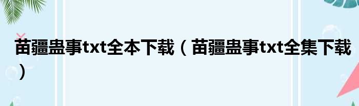 导读 大家好,今天小六子来为大家解答以下的问题,关于苗疆蛊事txt全本下载,苗疆蛊事txt全集下载这个很多人还不知道,现在让我们一起来看看吧!1