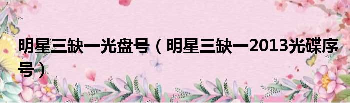导读 大家好,今天小六子来为大家解答以下的问题,关于明星三缺一光盘号,明星三缺一2013光碟序号这个很多人还不知道,现在让我们一起来看看吧!1