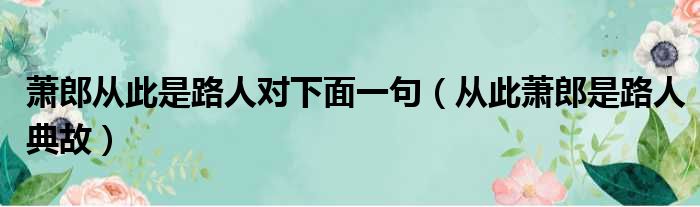 导读 大家好,今天小六子来为大家解答以下的问题,关于萧郎从此是路人对下面一句,从此萧郎是路人典故这个很多人还不知道,现在让我们一起来看看