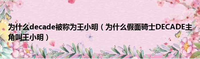 导读 大家好,今天小六子来为大家解答以下的问题,关于为什么decade被称为王小明,为什么假面骑士DECADE主角叫王小明这个很多人还不知道,现在让