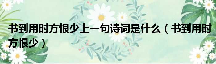 书到用时方恨少上一句诗词是什么(书到用时方恨少)