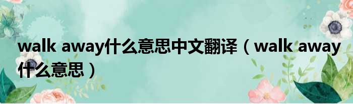 导读 大家好,今天小六子来为大家解答以下的问题,关于walk away什么意思中文翻译,walk away什么意思这个很多人还不知道,现在让我们一起来看