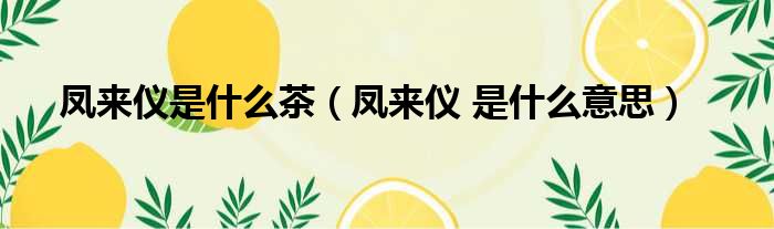 大家好,今天小六子来为大家解答以下的问题,关于凤来仪是什么茶,凤来仪 是什么意思这个很多人还不知道,现在让我们一起来看看吧!