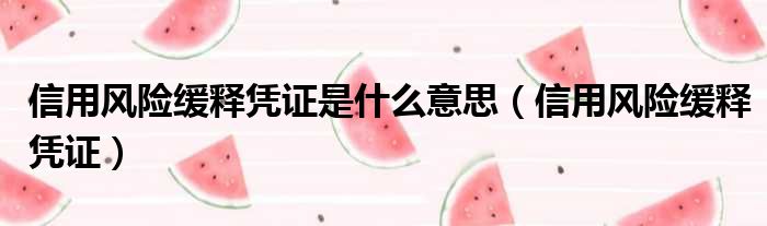 信用风险缓释凭证是什么意思(信用风险缓释凭证)