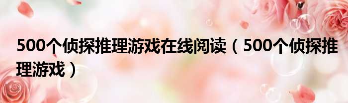 导读 大家好,今天小六子来为大家解答以下的问题,关于500个侦探推理游戏在线阅读,500个侦探推理游戏这个很多人还不知道,现在让我们一起来看看