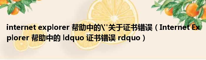 导读 大家好,今天小六子来为大家解答以下的问题,关于internet explorer 帮助中的"关于证书错误,Internet Explorer 帮助中的 ldquo 证书