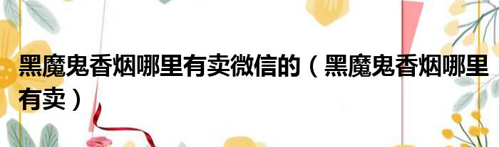 黑魔鬼香烟哪里有卖微信的(黑魔鬼香烟哪里有卖)