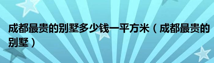 成都最贵的别墅多少钱一平方米(成都最贵的别墅)