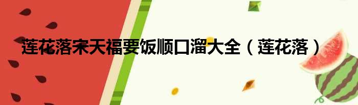 导读 大家好,今天小六子来为大家解答以下的问题,关于莲花落宋天福要饭顺口溜大全,莲花落这个很多人还不知道,现在让我们一起来看看吧!1、“莲