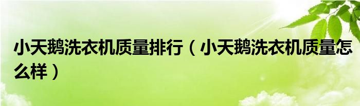 小天鹅洗衣机质量排行(小天鹅洗衣机质量怎么样)