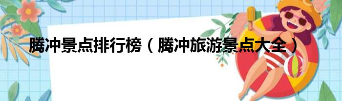 大家好,今天小六子来为大家解答以下的问题,关于腾冲景点排行榜,腾冲旅游景点大全这个很多人还不知道,现在让我们一起来看看吧!