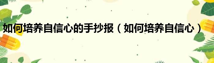 大家好,今天小六子来为大家解答以下的问题,关于如何培养自信心的手抄报,如何培养自信心这个很多人还不知道,现在让我们一起来看看吧!