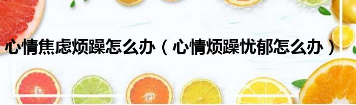 心情焦虑烦躁怎么办(心情烦躁忧郁怎么办)