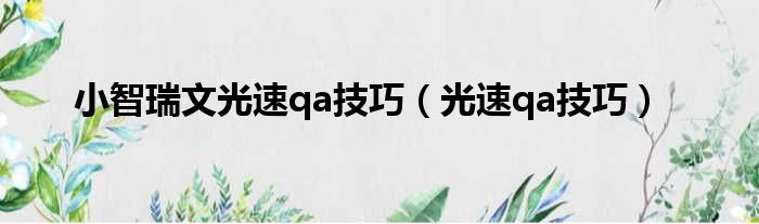 导读 大家好,今天小六子来为大家解答以下的问题,关于小智瑞文光速qa技巧,光速qa技巧这个很多人还不知道,现在让我们一起来看看吧!1、我先为楼
