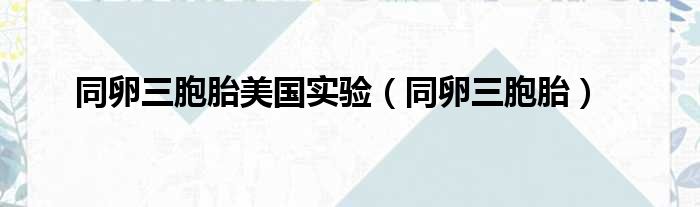 大家好,今天小六子来为大家解答以下的问题,关于同卵三胞胎美国实验,同卵三胞胎这个很多人还不知道,现在让我们一起来看看吧!