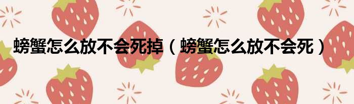 螃蟹怎么放不会死掉(螃蟹怎么放不会死)