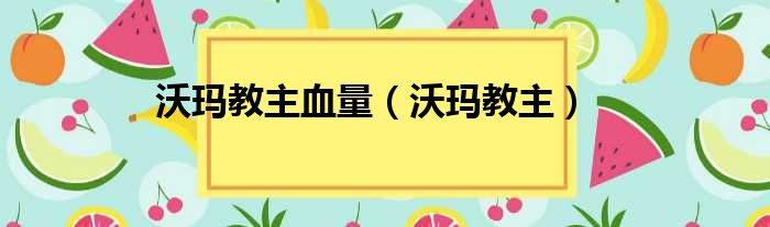 沃玛教主血量(沃玛教主)