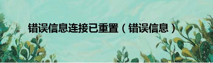 大家好,今天小六子来为大家解答以下的问题,关于错误信息连接已重置,错误信息这个很多人还不知道,现在让我们一起来看看吧!