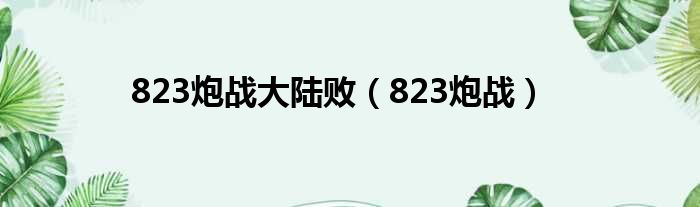 大家好,今天小六子来为大家解答以下的问题,关于823炮战大陆败,823炮战这个很多人还不知道,现在让我们一起来看看吧!