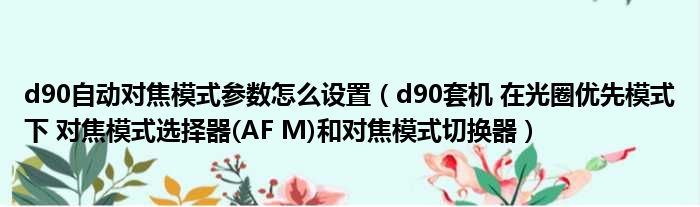 d90自动对焦模式参数怎么设置(d90套机 在光圈优先模式下 对焦模式选择器(AF M)和对焦模式切换器)