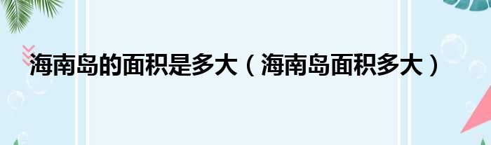 导读 大家好,今天小六子来为大家解答以下的问题,关于海南岛的面积是多大,海南岛面积多大这个很多人还不知道,现在让我们一起来看看吧!1、海南