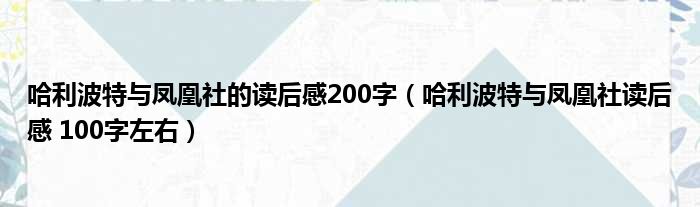 哈利波特与凤凰社的读后感200字(哈利波特与凤凰社读后感 100字左右)
