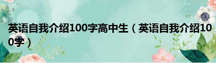 导读 大家好,今天小六子来为大家解答以下的问题,关于英语自我介绍100字高中生,英语自我介绍100字这个很多人还不知道,现在让我们一起来看看吧
