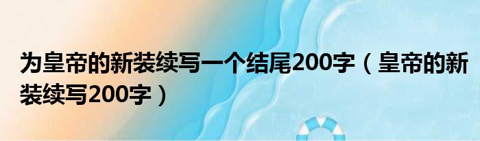 为皇帝的新装续写一个结尾200字(皇帝的新装续写200字)