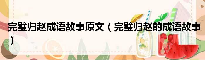 完璧归赵成语故事原文(完璧归赵的成语故事)