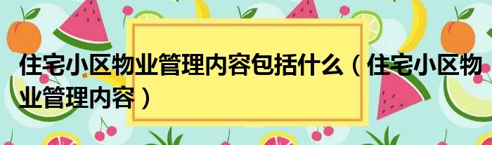 住宅小区物业管理内容包括什么(住宅小区物业管理内容)