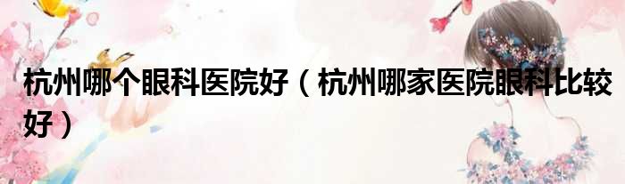 杭州哪个眼科医院好(杭州哪家医院眼科比较好)