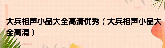 大兵相声小品大全高清优秀(大兵相声小品大全高清)