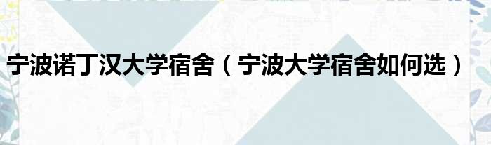宁波诺丁汉大学宿舍(宁波大学宿舍如何选)
