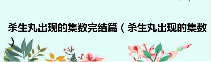杀生丸出现的集数完结篇(杀生丸出现的集数)