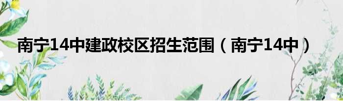 导读 大家好,今天小六子来为大家解答以下的问题,关于南宁14中建政校区招生范围,南宁14中这个很多人还不知道,现在让我们一起来看看吧!1、南宁