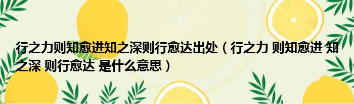 行之力则知愈进知之深则行愈达出处(行之力 则知愈进 知之深 则行愈达 是什么意思)