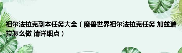 祖尔法拉克副本任务大全(魔兽世界祖尔法拉克任务 加兹瑞拉怎么做 请详细点)