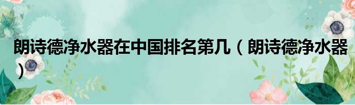 朗诗德净水器在中国排名第几(朗诗德净水器)