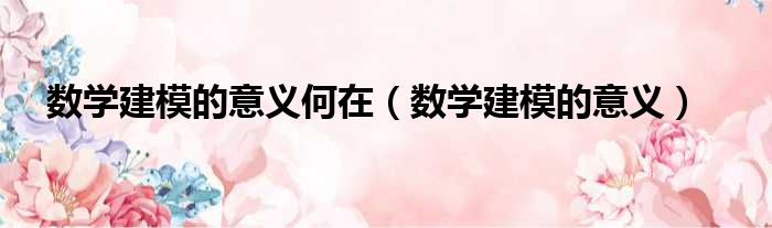 导读 大家好,今天小六子来为大家解答以下的问题,关于数学建模的意义何在,数学建模的意义这个很多人还不知道,现在让我们一起来看看吧!1、个人