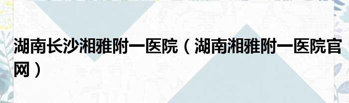 湖南长沙湘雅附一医院(湖南湘雅附一医院官网)