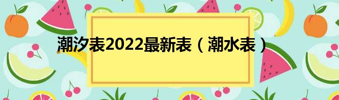 潮汐表2022最新表(潮水表)